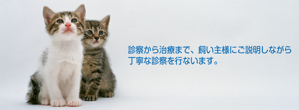 当院では、予防接種や健康診断など、毎日を健康に過ごしていただくためのお手伝いや、体調不良時の診断と治療、また、去勢・避妊手術など、地域の皆様のホームドクターになれますよう努力してまいります。